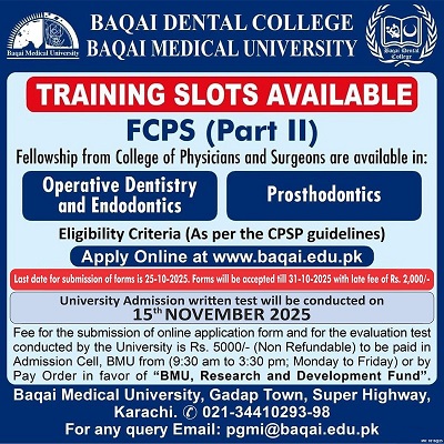 Training Programs for Physicians and Surgeons are available in Operative Dentistry & Prosthodontics